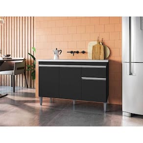 Balcão de Pia Ambiente Tatiane 120 cm Preto Fosco - AJL