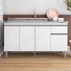 Balcão de Pia Ambiente Tatiane 145 cm Branco Brilho - AJL
