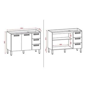 Balcão de Pia Ametista 2 Portas 3 Gavetas 120 cm Freijó Gris - Kits Paraná