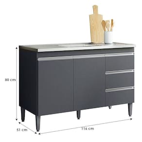 Balcão de Pia Andréia 120 cm Cinza Fosco ? AJL
