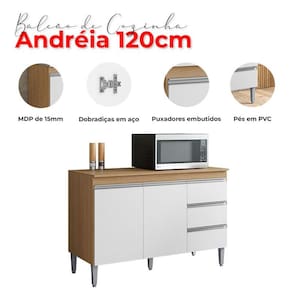 Balcão de Pia Andréia 120cm Amêndoa Branco - AJL