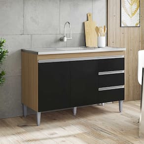 Características: Estrutura MDP Pintura UV 02 Portas com Dobradiças metálicas 03 Gavetas com Corrediças Metálicas 01 Prateleira com amplo espaço Pés de Plástico NÃO ACOMPANHA TAMPO, NEM CUBA.