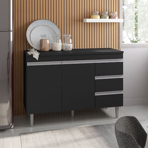 Balcão de Pia Andréia 120cm com Tampo Preto AJL Móveis