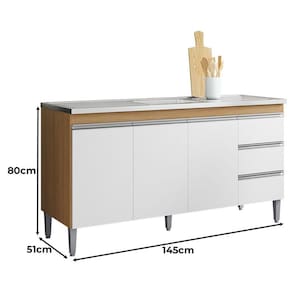 Balcão de Pia Andréia 150cm Amêndoa Branco - AJL
