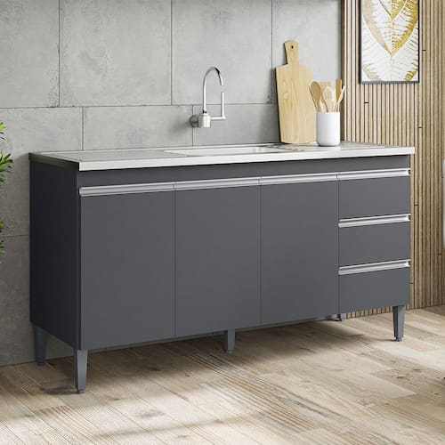 Características: Estrutura MDP Pintura UV 03 Portas com Dobradiças metálicas 03 Gavetas com Corrediças Metálicas 01 Prateleira com amplo espaço Pés de Plástico NÃO ACOMPANHA TAMPO, NEM CUBA.