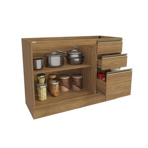 Acabamento: Pintura Touch | Cor: Nogueira | Corrediças: Telescópicas | Dobradiça: Com Amortecimento | Garantia: 3 meses para de fabricação | Matéria-prima: MDF | Peso suportado por cada gaveta: 6 Kg | Peso suportado por cada prateleira: 7 kg | Puxadores: Puxadores de Metal e de Alumínio | Quantidade de gavetas: 3 | Quantidade de prateleiras: 1 | Sistema de montagem: Parafuso Philips | Tipo de cozinha: Balcão | Materiais do corpo: MDF | Produto: Balcão | Duração da Garantia: 3 meses | Montagem: Necessita montagem | Tipo de Garantia: Garantia do fabricante | Requer montagem: Sim