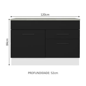 Um diferencial deste modelo é que acompanha tampo em MDP em pintura Mood, que também pode ser removido para colocação de pia de 120 cm de largura x 52 cm de profundidade.