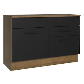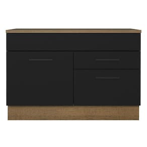 Balcão De Pia Cozinha 1 Porta E 2 Gavetas (com Tampo) Rustic/preto Agata Madesa Rustic/preto O Balcão de Pia de 120 cm da linha Agata da Madesa é fabricado com materiais nobres como puxadores com alça de alumínio, dobradiças metálicas com amortecimento e corrediças telescópicas de abertura total. Com uma porta e duas gavetas, é perfeito para deixar tudo mais organizado na sua cozinha, desde os mantimentos e louças até eletroportáteis. Os pés são reguláveis em PVC e o rodapé é em MDP, podendo ser removido para facilitar a limpeza.