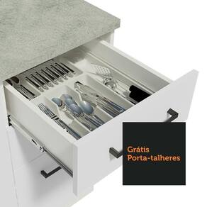 É fabricado com materiais nobres como puxadores com alça em alumínio , dobradiças metálicas com amortecimento e corrediças telescópicas para abertura total das gavetas. É ideal para organizar tudo na sua cozinha.