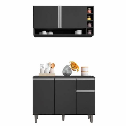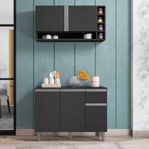 Balcão De Pia E Aéreo Cozinha 105cm Cinza Fosco Sem Tampo
