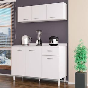 Procurando por armários para cozinha, apresentamos a você o Combo desenvolvido pela Poquema, Armário Aereo 3 Portas e Balcão de pia, ideal para ambientes compactos que não possuem muito espaço, lindo design na cor Branco Brilho proporcionando modernidade e um toque especial ao ambiente, possui amplo espaço interno, repartições para melhor organizar seus utensílios, fabricados com materiais de ótimas qualidades. Não deixe de aproveitar, garanta o seu!