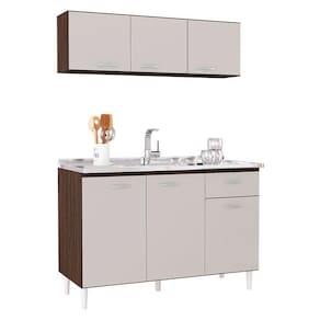Balcão de Pia e Armário Aéreo 120 cm Chocolate Off White – Poquema