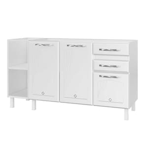 Caracteristicas: 2 Gavetas suportam ate 3kg com corredicas metalicas 2 Nichos 1 Prateleira interna 3 Portas com apliques resinados Acabamento em pintura eletrostatica e anticorrosiva Estrutura em aco e polipropileno Nao acompanha tampo Possui pes regulaveis e puxadores de plastico Revestimento BF