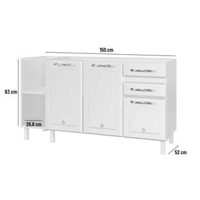 Caracteristicas: 2 Gavetas suportam ate 3kg com corredicas metalicas 2 Nichos 1 Prateleira interna 3 Portas com apliques resinados Acabamento em pintura eletrostatica e anticorrosiva Estrutura em aco e polipropileno Nao acompanha tampo Possui pes regulaveis e puxadores de plastico Revestimento BF