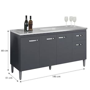 Balcão de Pia Gabriela 150 cm Cinza Fosco - AJL