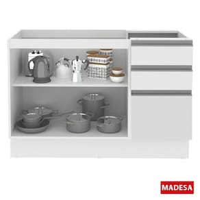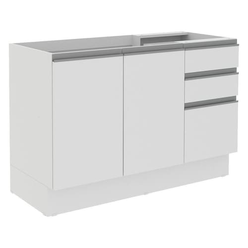 - Itens inclusos: 1 balcão de 120 cm de largura com duas 2 portas e 3 gavetas (não possui tampo).