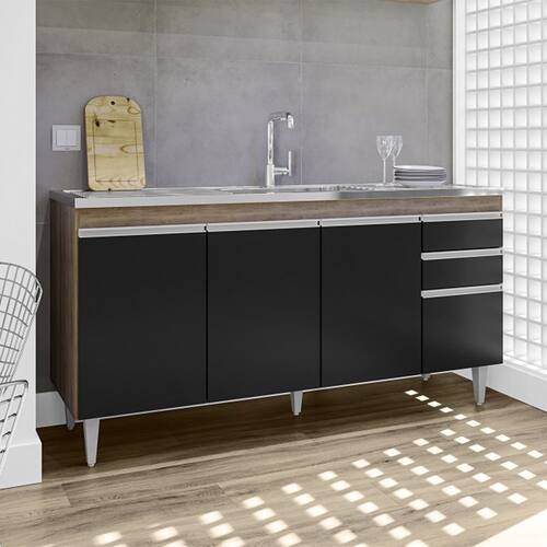 Balcão de Pia Lorena 160cm 4 Portas 2 Gavetas Freijó Preto Maderatto Móveis - Freijó | Preto