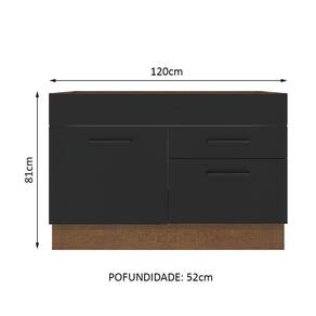 - Um (1) Balcão de 120cm de largura com uma (1) porta e duas (2) gavetas (Não acompanha tampo).