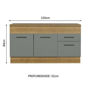 O balcão ainda acompanha tampo, que pode ser recortado para a colocação de pia de inox ou pedra no tamanho de 150 cm de largura x 52 cm de profundidade.