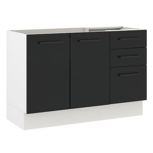 O Balcão de Pia de 120 cm com duas portas e três gavetas da linha Agata da Madesa possibilita o máximo de aproveitamento do espaço interno.