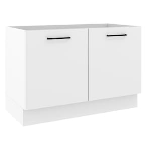 Este Balcão de Pia de 120 cm da linha Agata da Madesa possui duas portas e é fabricado com materiais de padrão superior, como puxadores com alça em alumínio e dobradiças metálicas com amortecimento.