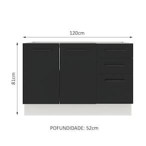Itens inclusos: - Um (1) Balcão de 120 cm de largura com duas (2) portas e três (3) gavetas (Não acompanha tampo).