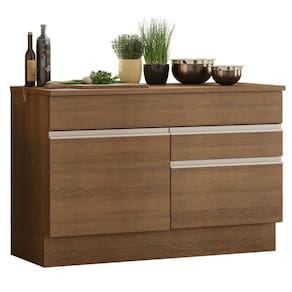 - Um (1) Balcão de 120 cm de largura com uma (1) portas e duas (2) gavetas e tampo em MDP com pintura Rustic