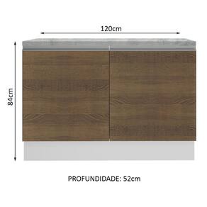 Balcão de Pia Madesa Glamy 120 cm 2 Portas (Com Tampo) - Branco/Rustic - Marrom