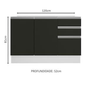 - Um (1) Balcão de 120 cm de largura com duas (2) portas e três (3) gavetas (Não acompanha tampo).