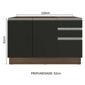 Itens inclusos: - Um (1) Balcão de 120 cm de largura com duas (2) portas e três (3) gavetas (Não acompanha tampo).