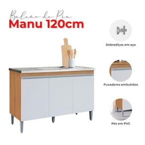 Balcão de Pia Manu 120cm Amêndoa Branco - AJL