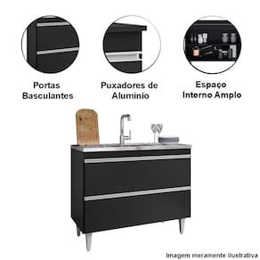 Balcão de Pia para Cozinha 100 cm 2 Portas Esmerita - Preto