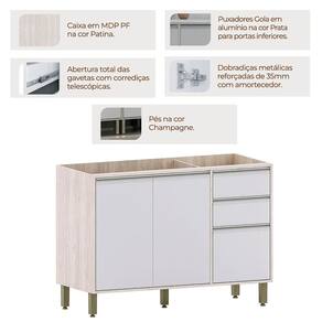 Característica do Balcão de Pia para Cozinha Modulada sem Tampo 120 cm Atenas: