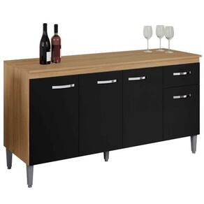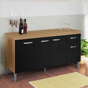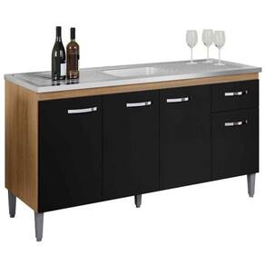 Balcão De Pia Para Cozinha 150 Cm Graziela 4 Portas 1 Gaveta Amêndoa/preto