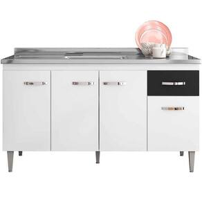 Balcão De Pia Para Cozinha 150 Cm Graziela 4 Portas 1 Gaveta Branco/preto