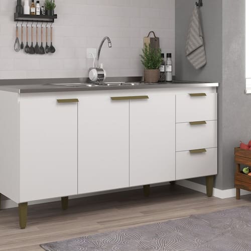 Balcão de Pia Sara 3 Portas e 3 gavetas com suas medidas de 160 cm de comprimento, produto indispensável para sua cozinha, resistente e durador, toda estrutura em MPD 1,5cm. Puxadores plásticos na cor bronze combinando com os pés, possui dobradiças e corrediças metálicas trazendo mais resistência e durabilidade ao produto. Suas 3 gavetas suportam até 7 kg de peso, seu interior conta com uma prateleira podendo suportar até 20 kg bem distribuídos. Produto completamente fácil de montar e que vai ficar lindo no seu ambiente. Suporta Granito: Sim Acabamento da Prateleira: Finish Foil Escala de Brilho da Prateleira: Fosco Acabamento da Gaveta: Finish Foil Escala de Brilho da Gaveta: Fosco Material do Puxador da Gaveta: Plástico Acabamento da Porta: Finish Foil Escala de Brilho da Porta: Fosco Material do Puxador da Porta: Plástico Produto Montado: Sim Acabamento: Finish Foil Acabamento dos Pés: Polipropileno Acompanha Tampo: Não Altura dos Pés: 17 cm Altura Máxima dos Pés: 17.0000 Ambiente Principal: Cozinha Balcão Acompanha Pia: Não Balcão Suporta Pia: Sim Cesto para Frutas: Não codigo_ean: 7900288000880 Complexidade da Montagem: Baixa: pode ser montado por uma pessoa sozinha Cor: Branco Cor do Produto: Branco Cor Interna: Branco Escala de Brilho: Fosco Espessura do Material da Estrutura: 15 mm Gaveta com Chave: Não Itens Inclusos: 1 Balcão + 1 Kit ferragem + 1 Manual de Montagem via QR Code impresso na caixa e no kit ferragem Linha ou Coleção: 2025 Manual de Especificação Técnica: https://product-hub-prd.madeiramadeira.com.br/961583/documents/207b4917-7acc-4ebc-a4f6-5eef3fb0a29d2509825266217301429983884.pdf Manual de Montagem e Instalação: https://product-hub-prd.madeiramadeira.com.br/961583/documents/012f4078-d29d-4c98-9d99-114ef5aa692b2509788266217301424810791.pdf Marca: j carvalho Material da Dobradiça/Corrediça da Porta: Metálica Material da Gaveta: MDP Material da Porta: MDP Material da Prateleira: MDP Material dos Pés: Polipropileno modular: Não Necessita Montagem: Sim O Balcão Acompanha Pia: Não Origem do Produto: Nacional Pés Reguláveis: Sim Peso: 44,2 kg Peso Máximo por Gaveta: 7 kg Peso Máximo por Prateleira: 7 kg Possui Pés: 06 Possui Portas: Sim Possui recorte para Cooktop: Não Recomendações de Uso, Manutenção e Limpeza: Flanela umedecida Sapatas Niveladoras: Sim Sistema de Montagem: parafusos Suporta Até (kg): 30 kg Tamanho Indicado do Tampo (L x P): 160x52 Tipo de Corrediça da Gaveta: Simples Tipo de Dobradiça/Corrediça da Porta: Simples Tipo de Porta: Bater Tipo de Puxador da Gaveta: Externo Tipo de Puxador da Porta: Externo