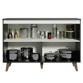 A parte interna é dividida entre uma prateleira e três nichos, perfeitos para organizar panelas, utensílios, louças e mantimentos. O balcão acompanha tampo, que pode ser retirado para colocação de pia no tamanho 120 cm de largura x 52 cm de profundidade.