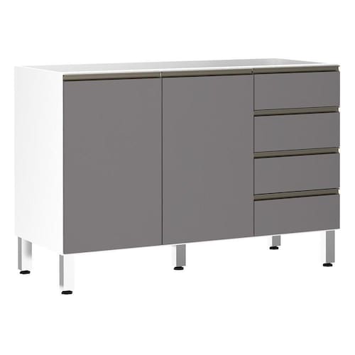 Balcão De Pia Sem Tampo Para Cozinha 120cm 2 Portas 4 Gavetas Pérola Luciane Móveis Branco Polar Com Cinza Puro Balcão Luciane Pérola tudo que sua cozinha precisa. Amplo espaço para organização de seus utensílios, além de um designer inovador.