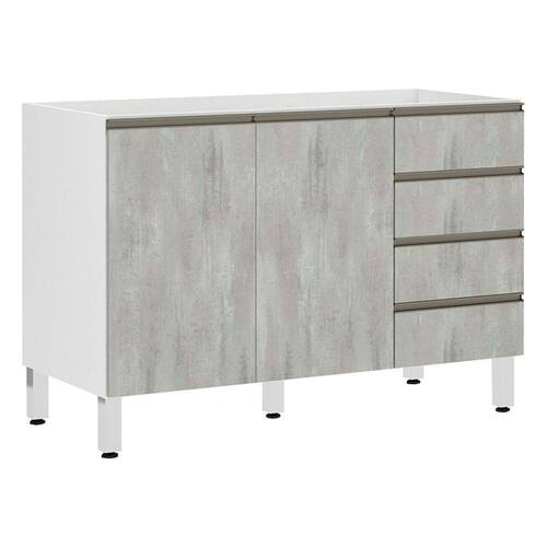 Balcão De Pia Sem Tampo Para Cozinha 120cm 2 Portas 4 Gavetas Pérola Luciane Móveis Branco Polar Com Concreto