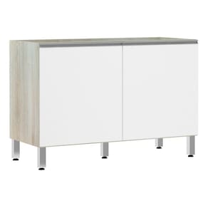 Balcão de Pia sem Tampo para Cozinha 120cm 2 Portas Lis Luciane Móveis O Balcão de 120cm 2 Portas Lis foi desenvolvido aliando beleza e praticidade na organização de sua cozinha. Conta com 2 porta de abrir, 1 prateleira, puxador perfil alumínio prata e pés em PS cromado. Perfeito para sua cozinha.