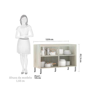 Balcão de Pia sem Tampo para Cozinha 120cm 2 Portas Luci Luciane Móveis