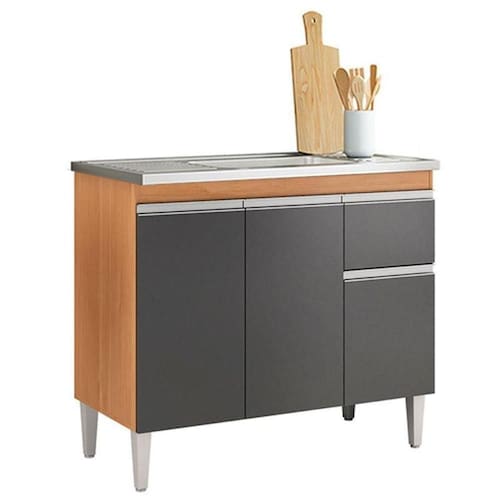Balcão de Pia Tatiane 100cm Amêndoa Preto - AJL