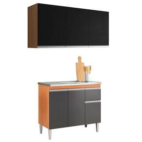 Balcão de Pia Tatiane 100cm e Armário Aéreo Andréia 3 Portas Amêndoa Preto - AJL