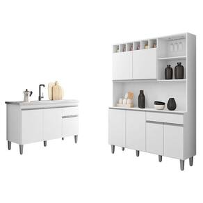 Balcão de Pia Tatiane 120 cm e Armário Cozinha Kit Alice Ambiente Branco Brilho - AJL
