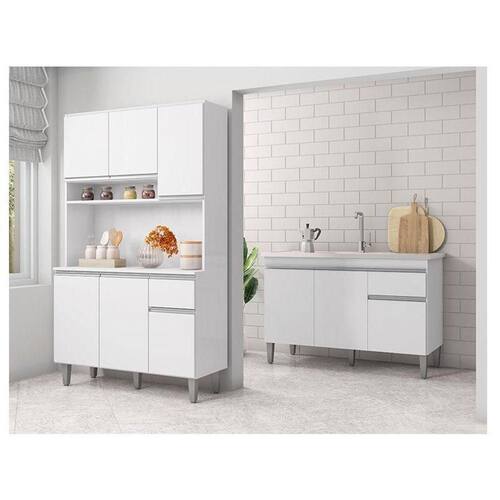 Balcão de Pia Tatiane 120 cm e Armário Cozinha Kit Márcia Ambiente Branco Brilho - AJL