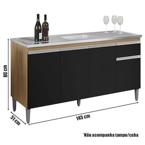 Balcão de Pia Tatiane 145 cm Amêndoa Preto – AJL