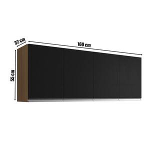 Armário Aéreo para Cozinha Andréia 4 Portas Amendoa Preto - AJL