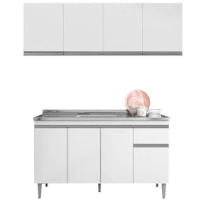 Balcão de Pia Tatiane 145 cm e Armário Aéreo Andréia 4 Portas 160 cm Branco Brilho - AJL