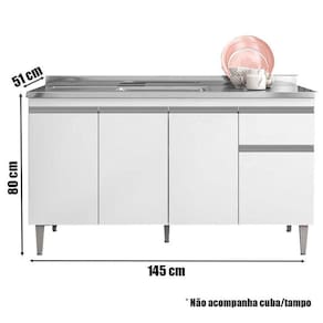 Balcão de Pia Tatiane 145 cm Branco Brilho - AJL