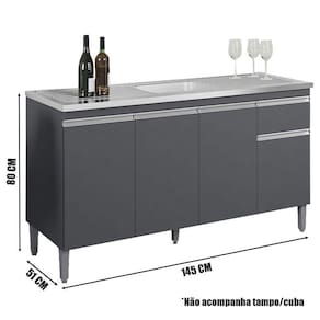 Balcão de Pia Tatiane 145 cm Cinza Fosco - AJL